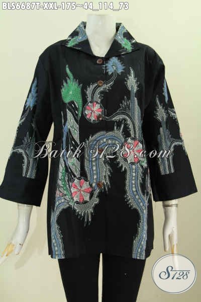 Jual Baju Batik Blus 3L, Pakaian Batik Wanita Gemuk Pross Tulis 100 Ribuan Bahan Halus Lengan 7/8 Model Kerah Kotak [BLS6687T-XXL]