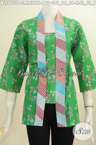 Jual Baju Batik Blus Model Kartini Warna Hijau Desain Elegan Bahan Halus Motif Trendy Proses Printing, Modis Untuk Kerja Dan Acara Resmi [BLS4412P-S , M , L]
