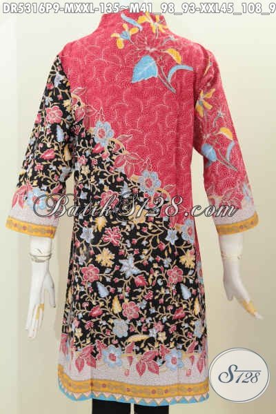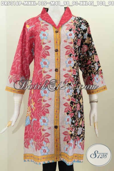 Jual Baju Batik Dress Terbaru 2016, Hadir Dengan Model Kerah Langsung Berpadu Kombinasi Warna Trendy Serta Motif Mewah Proses Printing Harga 130 Ribuan [DR5316P-M , XXL]