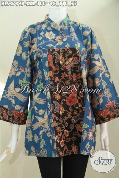 Jual Baju Batik Elegan Dua Motif, Pakaian Batik Warna Pagi Sore Model Berkelas Proses Print Ukuran 3L Pas Banget Buat Wanita Gemuk Tampil Lebih Cetar Membahana [BLS3739P-XXL]
