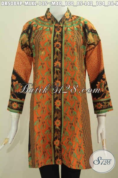 Jual Baju Batik Elegan Motif Klasik, Dress Batik Kerah Shanghai Kwalitas Halus Proses Printing Berbahan Adem Harga Terjangkau Kwalitas Istimewa [DR5089P-M , L , XL]