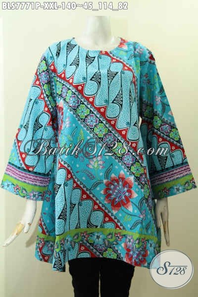 Jual Baju Batik Elegan Warna Cerah Motif Modern Klasik Big Size Proses Printing Model Tanpa Krah, Pas Untuk Kerja [BLS7771P-XXL]
