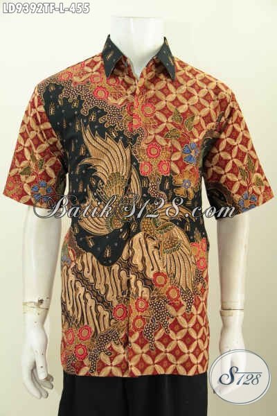 Jual Baju Batik Hem Pria Branded, Busana Batik Mewah Lengan Pendek Motif Bagus Proses Tulis Daleman Full Furing Untuk Penampilan Lebih Sempurna [LD9392TF-L]