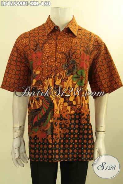 Jual Baju Batik Jumbo Lengan Pendek Kwalitas Istimewa Motif Elegan Jenis Kombinasi Tulis Spesial Untuk Pria Gemuk, Busana Batik Solo Asli Pilihan Tepat Untuk Busana Kerja Kantor [LD12599BT-XXL]