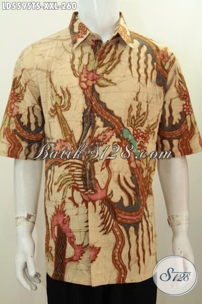 Jual Baju Batik Jumbo Spesial Buat Lelaki Berbadan Gemuk, Busana Batik Trendy Motif Bagus Porses Tulis Tangan Pewarna Soga Model Lengan Pendek Harga 260K [LD5595TS-XXL]