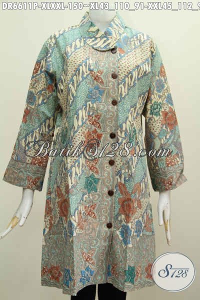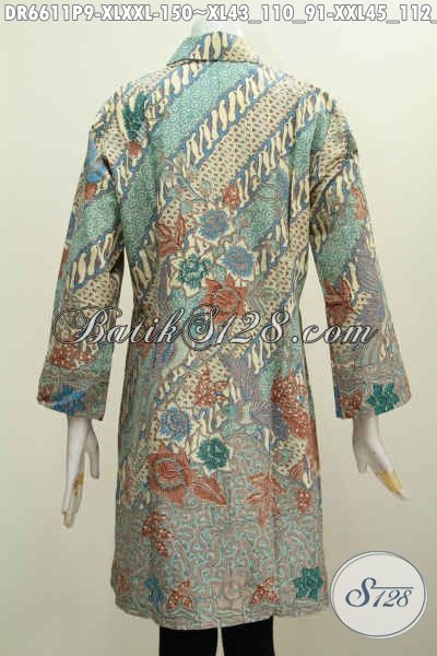 Jual Baju Batik Kerja Cewek Terkini, Dress Kerah Miring Motif Mewah Warna Bagus Proses Printing Mampu Membuat Penampilan Makin Sempurna [DR6611P-XL , XXL]