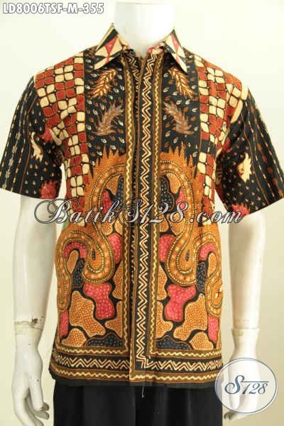 Jual Baju Batik Kerja Pria 300 Ribuan, Pakaian Batik Berkelas Bahan Adem Motif Unik Prosews Tulis Soga Model Lengan Pendek Pakai Furing [LD8006TSF-M]