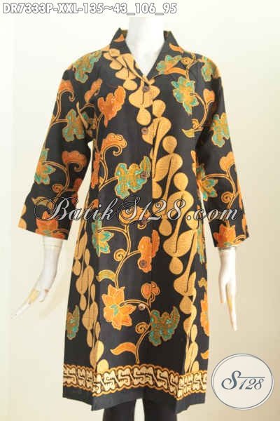Jual Baju Batik Kerja Wanita Modis, Dress Batik Kerah Langsung Motif Bagus Proses Printing, Jual Online Harga 135 Ribu [DR7333P-XXL]