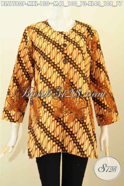 Jual Baju Batik Klasik Desain Tanpa Krah, Blus Batik Printing Berkelas Penampilan Terlihat Elegan Dan Mewah [BLS7580P-M , XL]