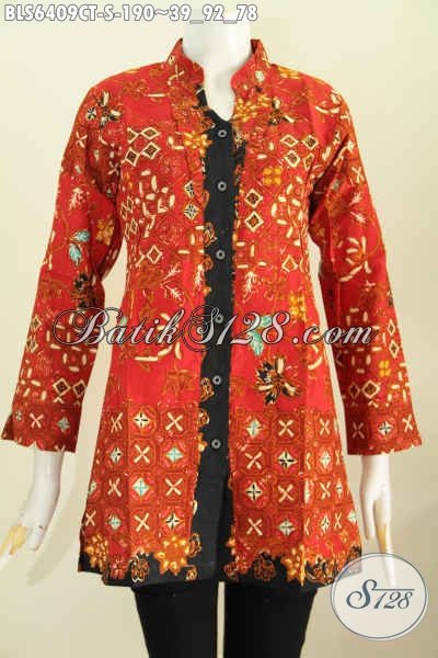 Jual Baju Batik Kwalitas Premium, Blus Batik Solo Lengan Panjang Rempel Depan Kerah Shanghai Istimewa Untuk Seragam Kerja Proses Cap Tulis [BLS6409CT-S]