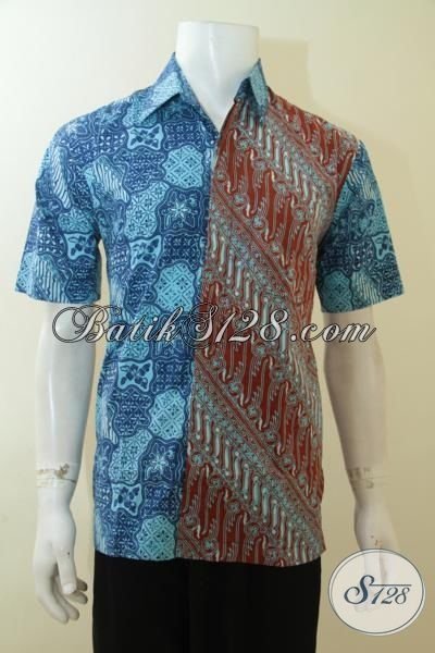 Jual Baju Batik Lengan Pendek Paling Populer Saat Ini, Hem Batik Dua Motif Dan Warna Trend Mode 2015, Baju Batik Anak Muda Tampil Gaul Dan Modis [LD3980CT-M]