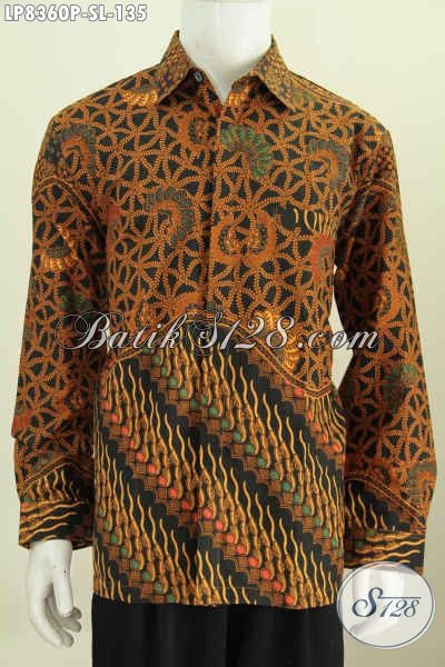Jual Baju Batik Modern Buatan Solo, Baju Batik Lengan Panjang Terbaru Untuk Pria Muda Dan Dewasa Tampil Beda Dan Gagah [LP8360P-S , L]