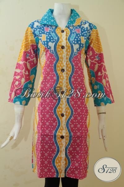 Jual Baju Batik Modern Kwalitas Halus Proses Printing, Blus Batik Model Terbaru Dengan Kombinasi Motif Keren Serta Warna Cerah, Membuat Cewek Terlihat Fresh [BLS3429P-M , L , XL , XXL]