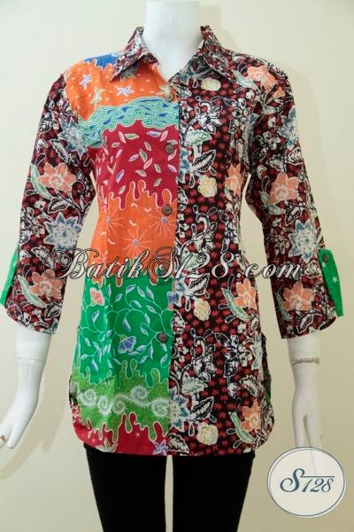 Jual Baju Batik Murah Kwalitas Ok, Blus Batik Untuk Perempuan Dengan Motif Modern Dan Desain Cantik Trend Terkini [BLS1915CP-L]