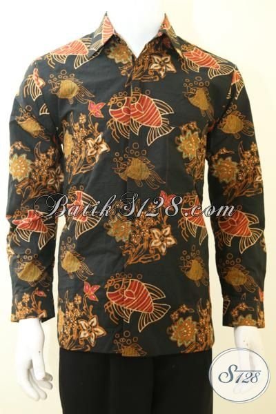 Jual Baju batik Online Kwalitas Halus Motif Ikan, Baju Batik Klasik Lengan Panjang Dasar Hitam Full Furing Tampil Elegan [LP3471CTF-M]