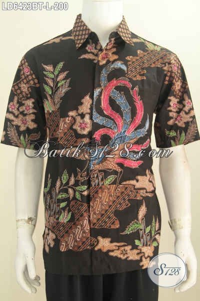 Jual Baju Batik Online Motif Terbaru, Hem Batik Hitam Kombinasi Tulis Model Lengan Pendek Buat Pria Bisa Tampil Macho [LD6423BT-L]