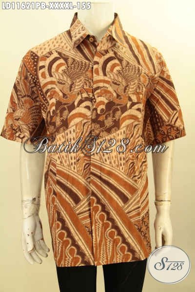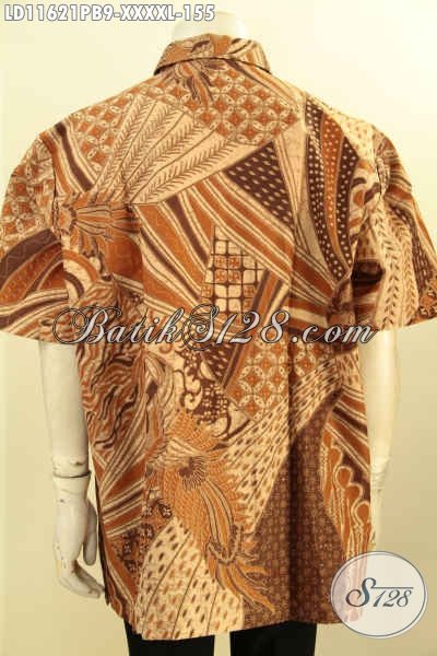 Jual Baju Batik Pria Big Size, Pakaian Batik Untuk Pria Gemuk Sekali Model Lengan Pendek Motif Bagus Printing Cabut, Busana Batik Solo Asli Proses Printing Cabut Nan Modis Untuk Kerja Atau Acara Resmi Hanya 100 Ribuan [LD11621PB-XXXXL]