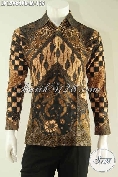 Jual Baju Batik Pria Lengan Panjang Kwalitas Istimewa, Baju Batik Formal Motif Elegan Jenis Print Cabut Berbahan Halus Yang Nyaman Di Pakai [LP12984PB-M]
