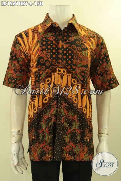 Jual Baju Batik Pria Masa Kini Desain Keren Motif Elegan, Kemeja Batik Solo Kombinasi Tulis Model Lengan Pendek, Pilihan Terbaik Untuk Seragam Kerja Dan Acara Resmi [LD12610BT-L]