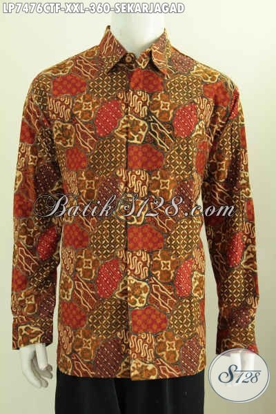 Jual Baju Batik Sekarjagad Proses Cap Tulis Ukuran 3L Buat Pria Gemuk Model Lengan Panjang Full Furing Hanya 360K [LP7476CTF-XXL]
