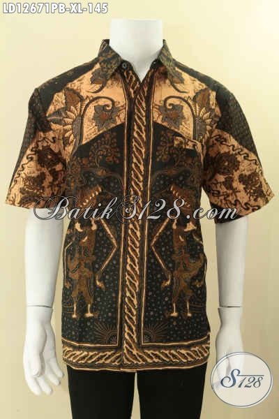 Jual Baju Batik Solo Masa Kini Model Lengan Pendek, Pakaian Batik Tren Terbaru Motif Bagus Jenis Print Kwalitas Istimewa, Bikin Penampilan Pria Lebih Mempesona [LD12671PB-XL]