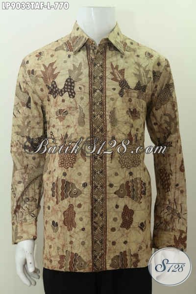 Jual Baju Batik Solo Mewah, Hem Batik Tulis Warna Alam Motif Klasik Bahan Adem Model Lengan Panjang Pake Furing [LP9033TAF-L]