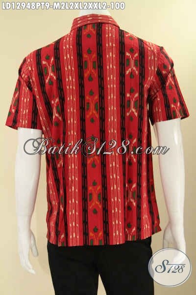 Jual Baju Batik Solo Motif Tenun Pas Buat Seragam, Kemeja Pria Lengan Pendek Istimewa Penampilan Terllihat Gagah Mempesona [LD12948P-M, XL]