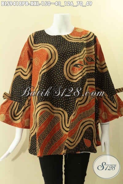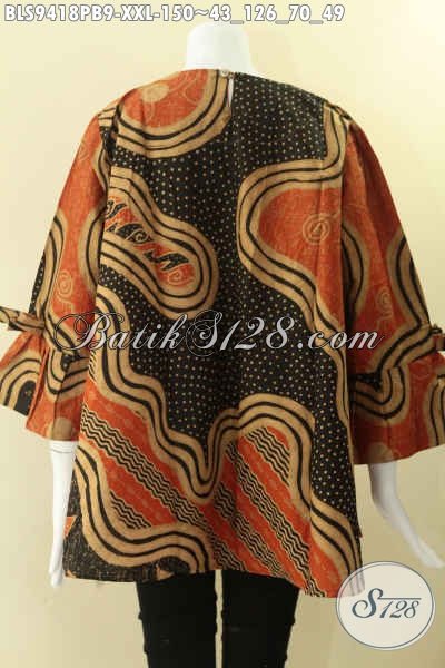 Jual Baju Batik Solo Spesial Buat Wanita Gemuk, Hadir Dengan Motif Bagus Jenis Print Cabut Kwalitas Istimewa Model Kancing Belakang Lengan 7/8 Dan Berpita [BLS9418PB-XXL]