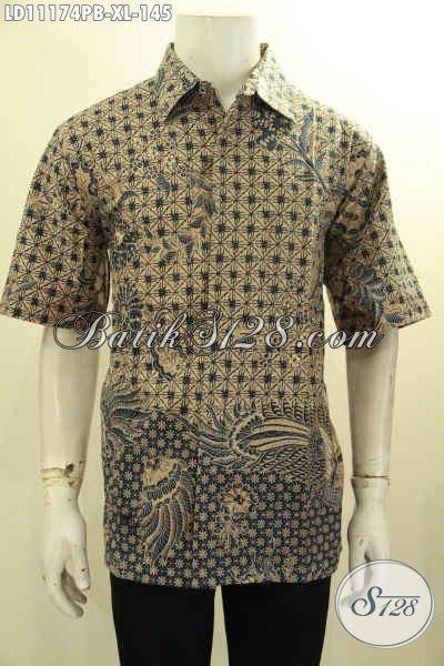 Jual Baju Batik Solo Terbaik Harga Terjangkau, Kemeja Batik Elegan Model Lengan Pendek Motif Bagus Proses Printing Cabut, Pas Buat Acara Formal [LD11174PB-XL]