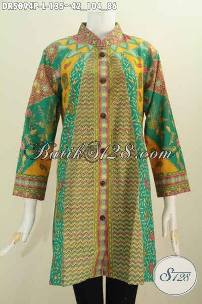 Jual Baju Batik Solo Terbaru, Pakaian Batik Dress Motif Klasik Proses Printing Desain Kerah Shanghai Bahan Adem Untuk Wanita Terlihat Anggun Dan Cantik Maksimal [DR5094P-L]