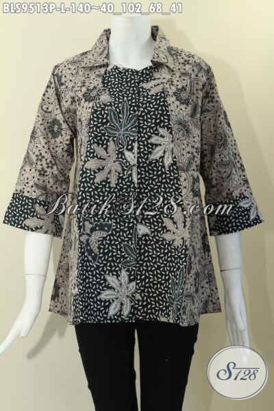 Jual Baju Batik Wanita Blouse 2 Motif, Pakaian Batik Kekinian Desain Krah Lengan 7/8 Di Lengkapi Kancing Depan, Istimewa Untuk Acara Santai Maupun Resmi [BLS9513P-L]