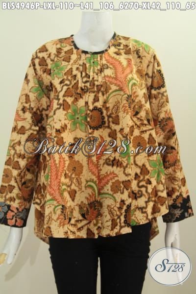 Jual Baju Batik Wanita Terkini Dengan Desain Berkelas Dan Bahan Nan Istimewa, Pakaian Batik Lengan Panjang Motif Bagus Proses Printing Untuk Penampilan Makin Mempesona [BLS4946P-XL]