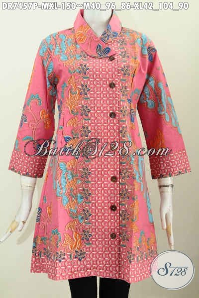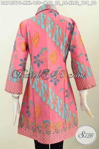 Jual Baju Batik Warna Pink, Dress Batik Kerah Miring Motif Keren Bahan Halus Proses Printing Hanya 150K [DR7457P-M , XL]