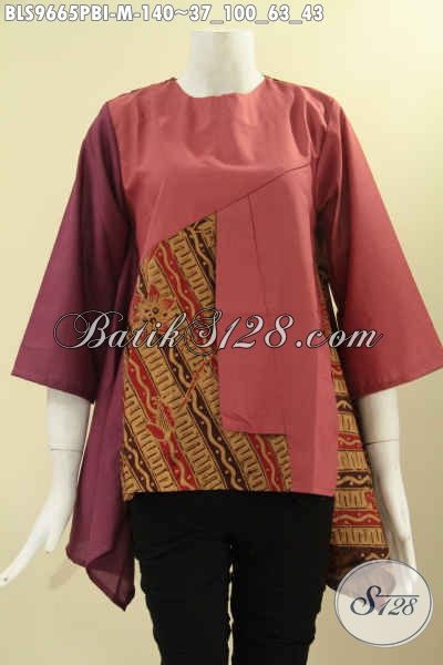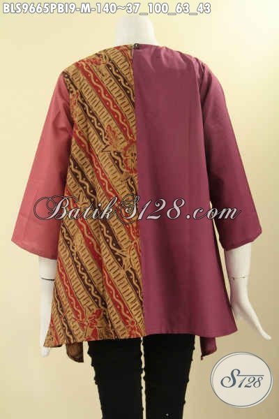 Jual Baju Blouse Batik Wanita Desain Modis Dan Berkelas, Busana Batik Atasan Kombinasi Kain Polos Katun Ima Lengan 3/4 Tanpa Krah Di Lengkapi Kancing Belakang [BLS9665PBI-M]