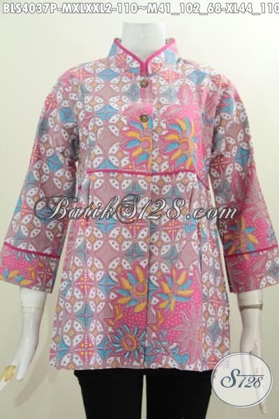 Jual Baju Blus Batik Online, Produk Pakaian Wanita Terbaru Model Kerah Shanghai Berbahan Halus Batik Printing Asli Solo, Cocok Untuk ke Pesta Tampil Mempesona [BLS4037P-M , XL , XXL]
