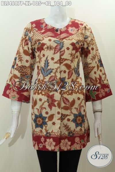 Jual Baju Blus Dua Warna Trend Mode Masa Kini, Pakaian Batik Halus Buatan Solo Motif Printing Terbaru Untuk Penampilan Makin Modis [BLS4687P-XL]