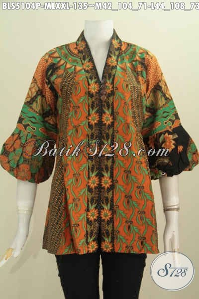 Jual Baju Blus Istimewa Dengan Harga Biasa, Pakaian Batik Masa Kini Model Kerah Kartini Motif Mewah Proses Printing Dengan Lengan Desain Balon Untuk Tampil Stylish Dan Elegan [BLS5104P-M , L , XXL]