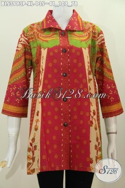 Jual Baju Blus Kerah Kotak Model Terbaru Dengan Desain Berkelas Untuk Wanita Dewasa, Baju Batik Printing Motif Terkini Tampil Trendy Setiap Hari [BLS3993P-XL]