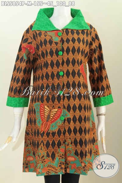 Jual Baju Blus Kerah Lebar Nan Modis, Produk Pakaian Batik Berkelas Desain Mewah Kerah Lebar Untuk Cewek Terlihat Makin Modis [BLS5854P-M]