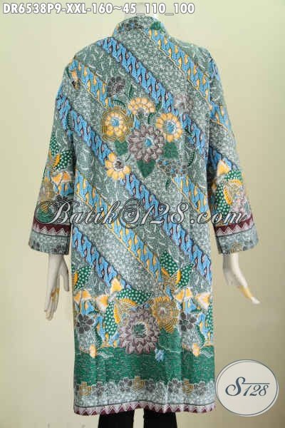 Jual Baju Dress Batik 3L, Busana Batik Solo Terkini Proses Printing Motif Bagus Kwalitas Istimewa Desain Berkelas Tampil Mempesona [DR6538P-XXL]
