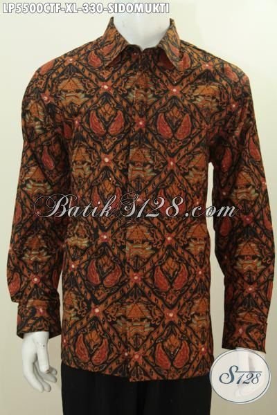 Jual Baju Formal Untuk Pria Dewasa, Kemeja Batik Klasik Motif Sidomukti Model Lengan Panjang Pake Furing Proses Cap Tulis Untuk Tampil Gagah Dan Elegan [LP5500CTF-XL]