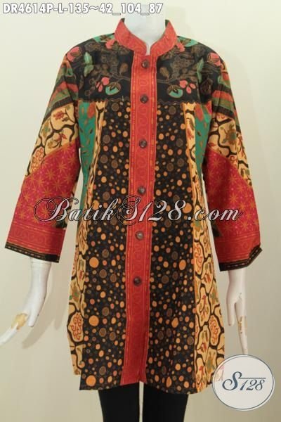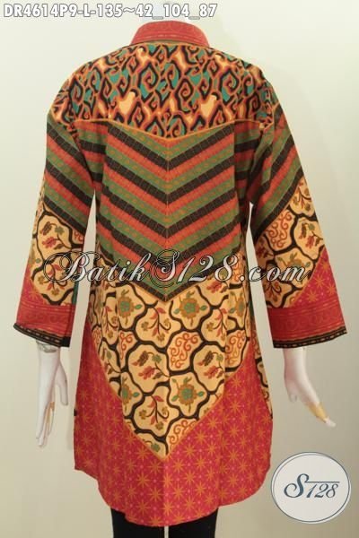 Jual Baju Kerja Model Dress Berbahan Batik Printing Motif Sinaran, Busana Batik Modis Desain Mewah Trend Terkini Penunjang Penampilan Wanita Lebih Sempurna [DR4614P-L]