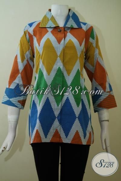 Jual Batik Baju Blus Model Terbaru Motif Rangrang Dengan Kombinasi Aneka Warna Keren, Cocok Untuk Jalan-Jalan Dan Pesta [BLS2424P-M]