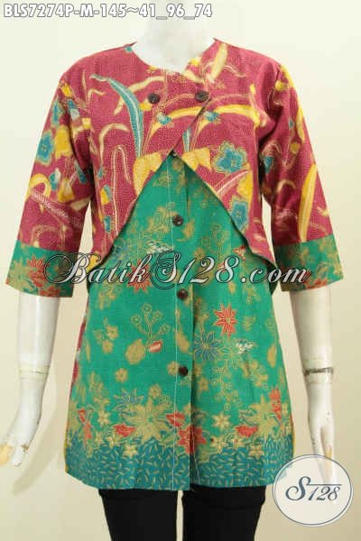 Jual Batik Blus Desain Kombinasi Rompi Sambung, Busana Batik Trendy Untuk Wanita Muda Tampil Bergaya Harga 145K [BLS7274P-M]