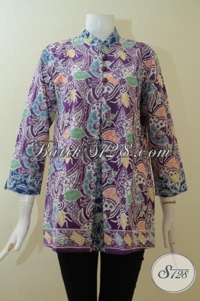 Jual Batik Blus Halus Motif Khas Solo, Batik Seragam Kerja Keren Untuk Cewek Masa Kini, Batik Cap Warna Ungu Modern Dan Modis [BLS3023C-M]