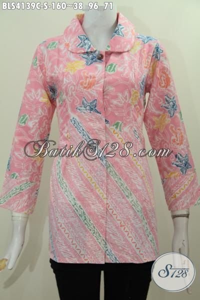 Jual Batik Blus Modern Warna Pastel Motif Bunga Kwalitas Bagus, Baju Batik Elegan Berkelas Proses Cap Sempurnakan Penampilan Wanita Karir [BLS4139C-S]