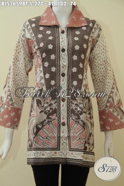 Jual Batik Blus Online Kwalitas Premium, Pakaian Kerja Batik Kombinasi Tulis Model Mewah Tampil Makin Cetar Membahan [BLS3659BT-L]