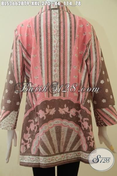 Jual Batik Blus Online, Pakian Batik Perempuan Terbaru Hadir Dengan Model Berkelas Berpadu Motif ELegan Yang Bikin Penampilan Cewek Gemuk Terlihat Sempurna [BLS3662BT-XXL]