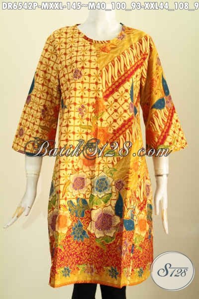 Jual Batik Dress Tanpa Krah, Baju Batik Wanita Desain Resleting Belakang Motif Bagus Proses Printinf Hanya 145 Ribu [DR6542P-M , XXL]