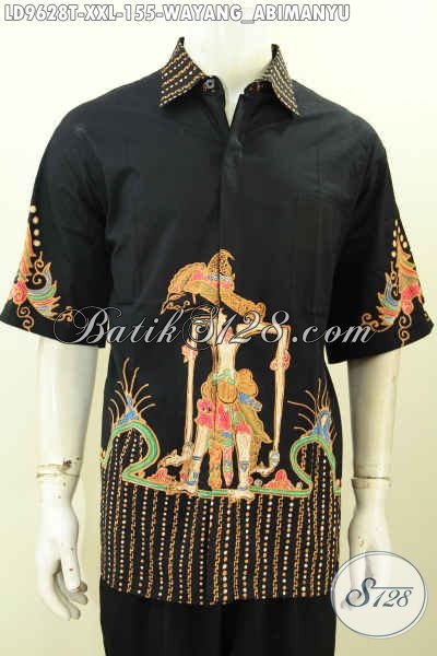 Jual Batik Hem Pria Lengan Pendek Halus Proses Tulis Kwalitas Istimewa Motif Wayang Abimanyu Big Size Untuk Lelaki Badan Gemuk [LD9628T-XXL]